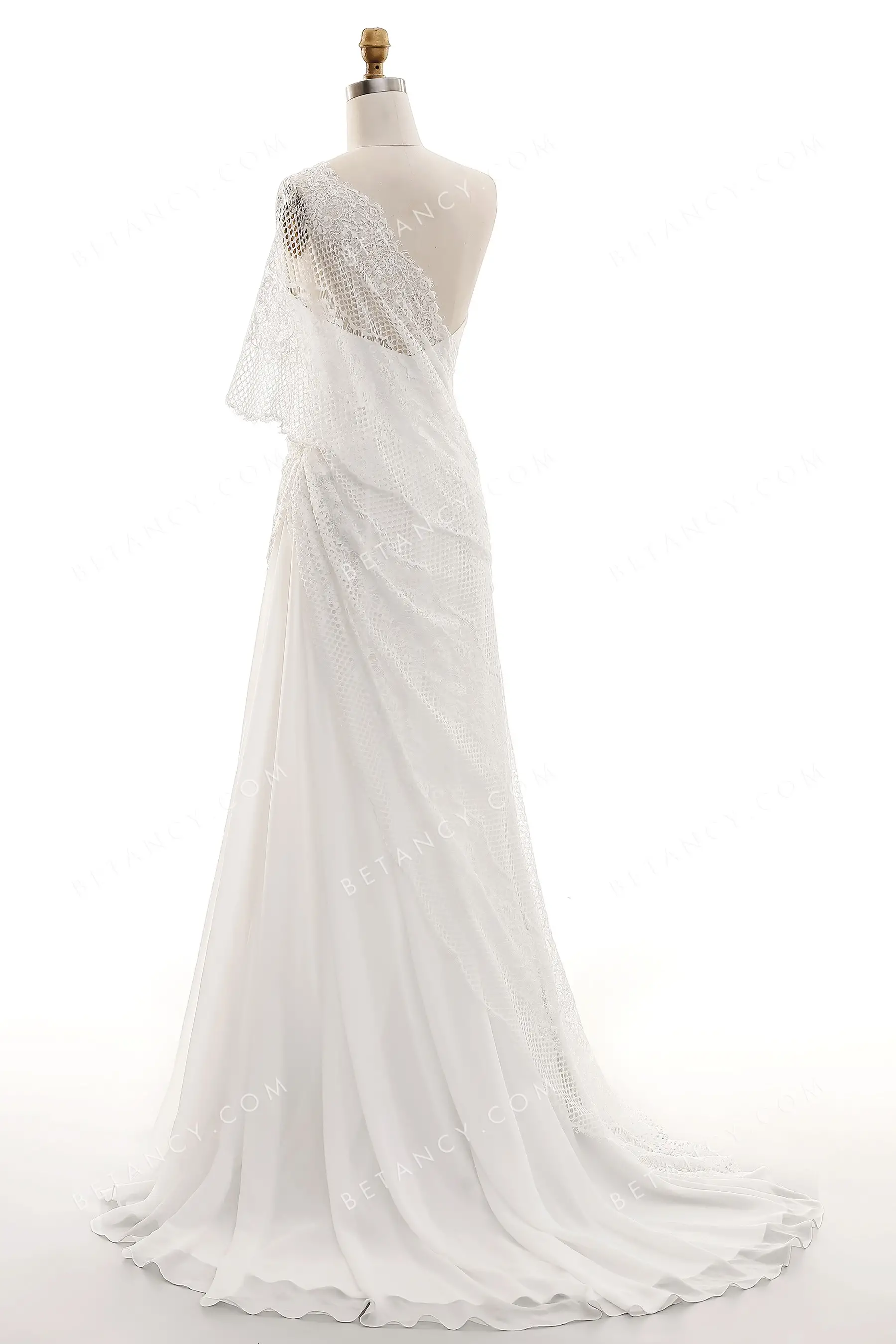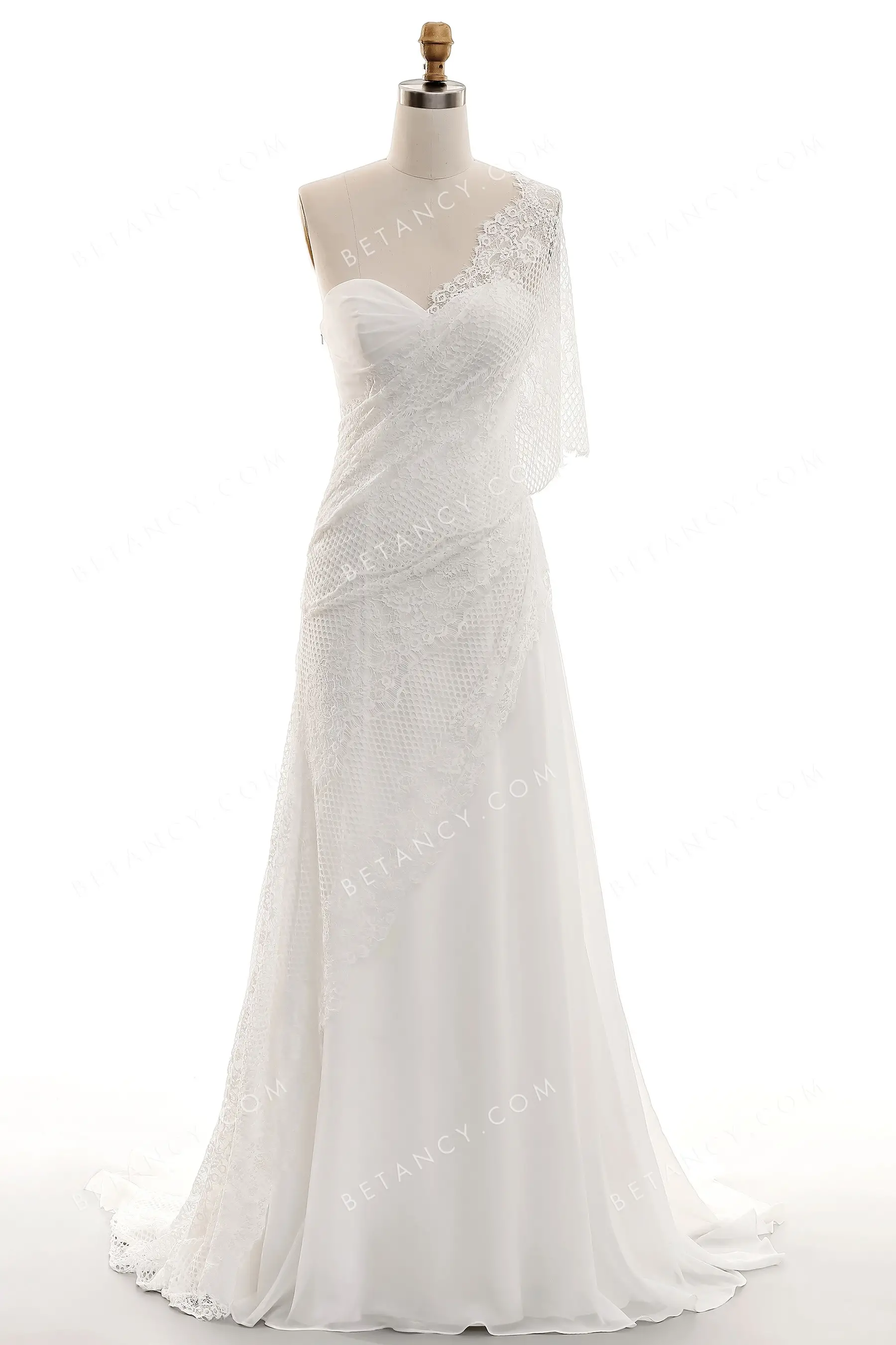 Asymmetric Shoulder Lace & Chiffon Grecian Bridal Gown