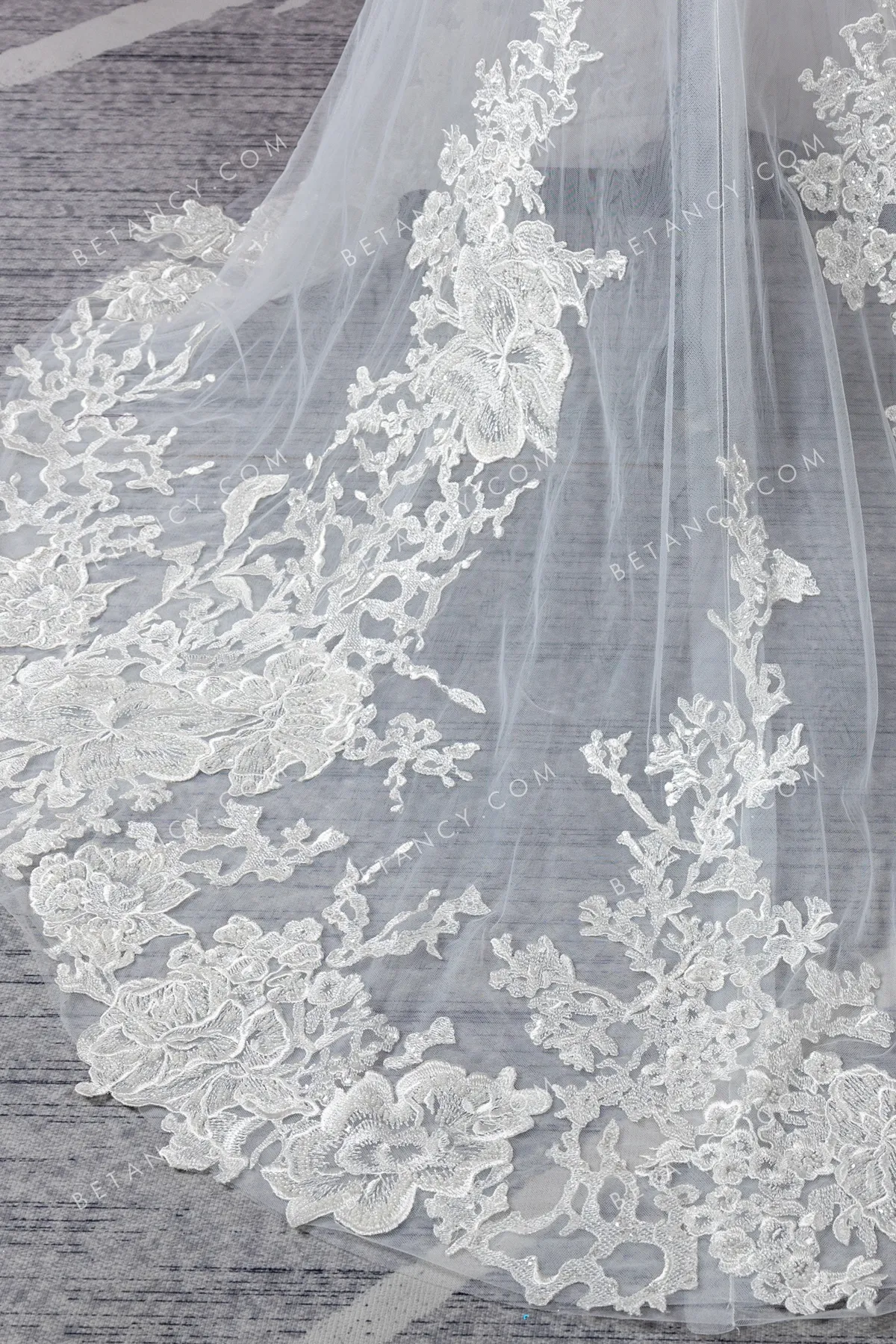 Stunning See-through Lace & Tulle Mermaid Wedding Gown